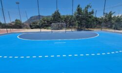Además Global Grass suministró e instaló todo el equipamiento deportivo con porterías y redes de protección en fondos y laterales y asientos en gradas. La superficie total ejecutada asciende a un total de unos 1.200 m2 con el Sistema Global Grass Sportplus sobre Asfalto de 6 capas con una combinación de colores azules.