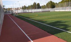 Posteriormente realizó también la instalación del equipamiento deportivo (porterías y canastas) así como la colocación de todo el perímetro exterior de postes y redes protectoras en las pistas.Los colores elegidos en las pistas fueron dos tonos de azul y calles de atletismo en rojo y la pista de futbito de césped artificial en verde.