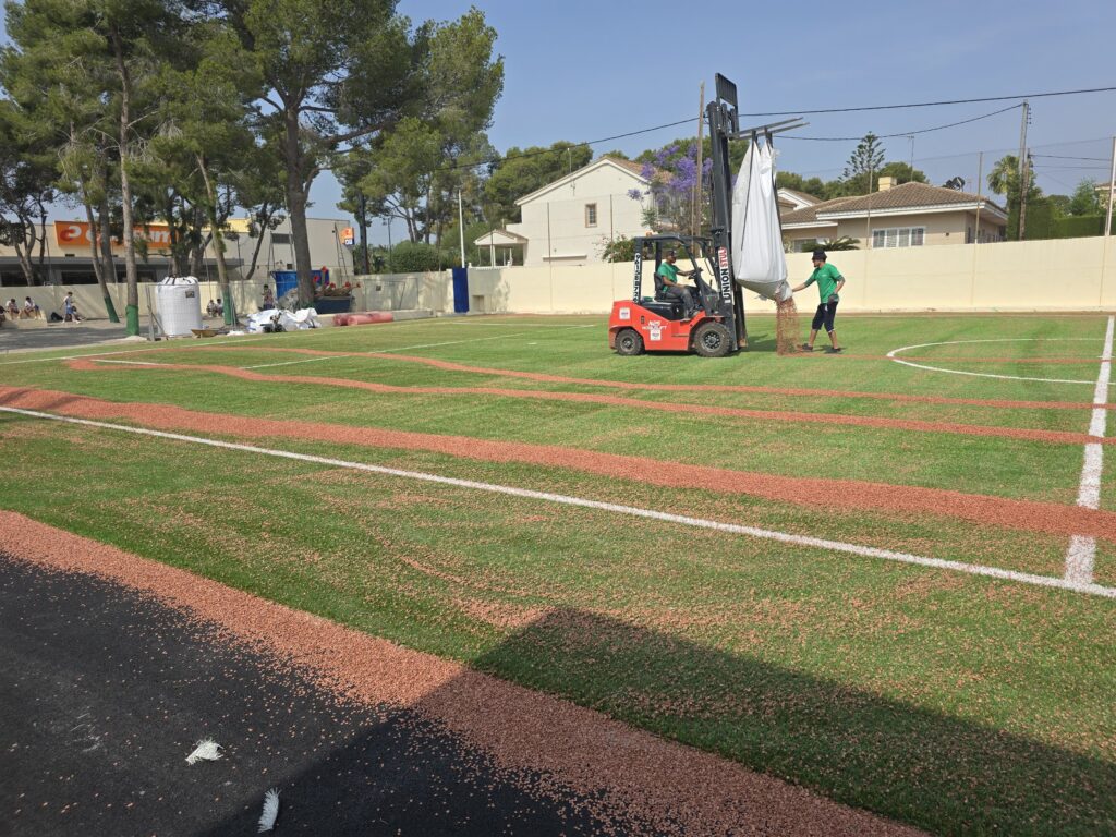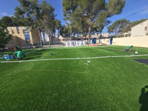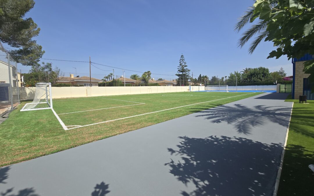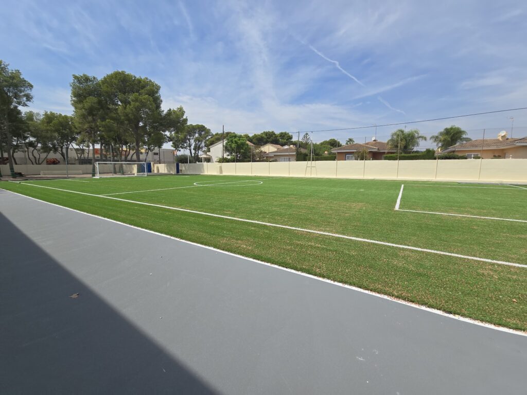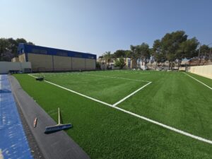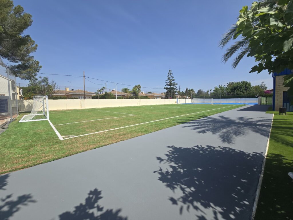 GLOBAL GRASS S.L. ha finalizado con éxito la segunda fase de obras en el Colegio Internacional Entrenaranjos de La Eliana, donde se han ejecutado 2.000 m² de campo de Fútbol-7 y pistas polideportivas.