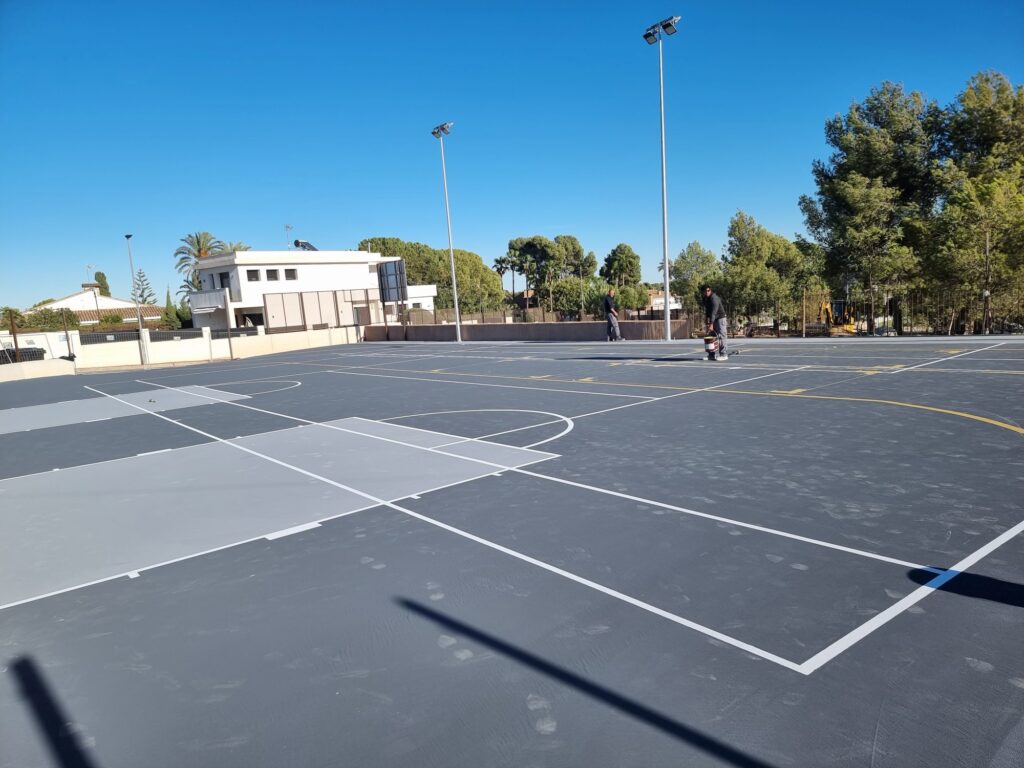 GLOBAL GRASS SL acaba de ejecutar dos pistas polideportivas más desde el asfaltado al sistema de resinas Global Grass Sportplus y equipamiento deportivo que se suma ya a las anteriores del campo de futbol 5 y basket, convirtiendo el área deportiva de este centro en una zona de más de 2.000 m2.