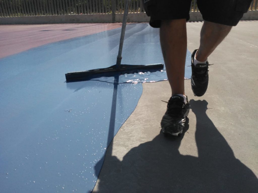 Global Grass realizó los trabajos previos de lijado y diamantado del hormigón con su máquina pulidora orbital de altas prestaciones para posteriormente sanear las juntas y zonas de hormigón degradadas. Por último aplicar el revestimiento Sportplus en las diferentes pistas polideportivas en dos tonos de azul. Global Grass realizó también el marcaje de los diferentes deportes (basket, futbol sala y voleybol) quedando totalmente renovado el patio de este Colegio de la ciudad de Valencia.