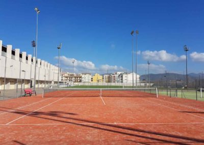 Sistema de césped sintético con relleno de árido. Moqueta de características adecuada para la práctica del tenis, tanto para uso amateur como para uso profesional. Elaborada con fibra de prolipopileno, favorece el óptimo uso de la superficie de juego, así como la interacción entre jugador y pelota, además del deslizamiento controlado del deportista.