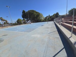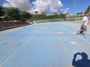 El proyecto ha supuesto la reconversión de antiguas pistas de hormigón poroso que presentaban un estado muy deteriorado —con juntas levantadas, zonas hundidas y falta de drenaje—. Gracias a la experiencia de Global Grass, se han transformado en unas modernas pistas de moqueta MASTER CLAY, una superficie diseñada específicamente para el tenis que reproduce fielmente las sensaciones del juego sobre tierra batida tradicional.