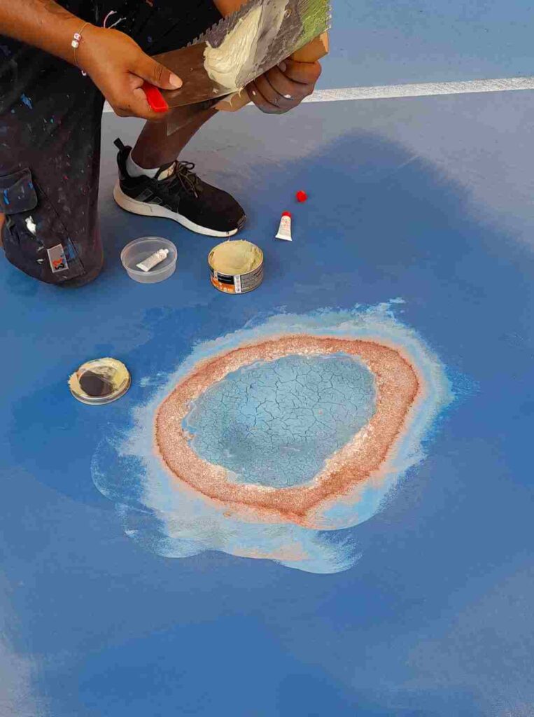 Los trabajos de restauración que Global Grass ejecutó debido al mal estado del pavimento anterior fue el desbastado y la posterior aplicación del Sistema Global Grass Sportplus de resinas sobre hormigón en la pista y en el área perimetral así como el retoping del hormigón poroso en algunas pista existentes.
